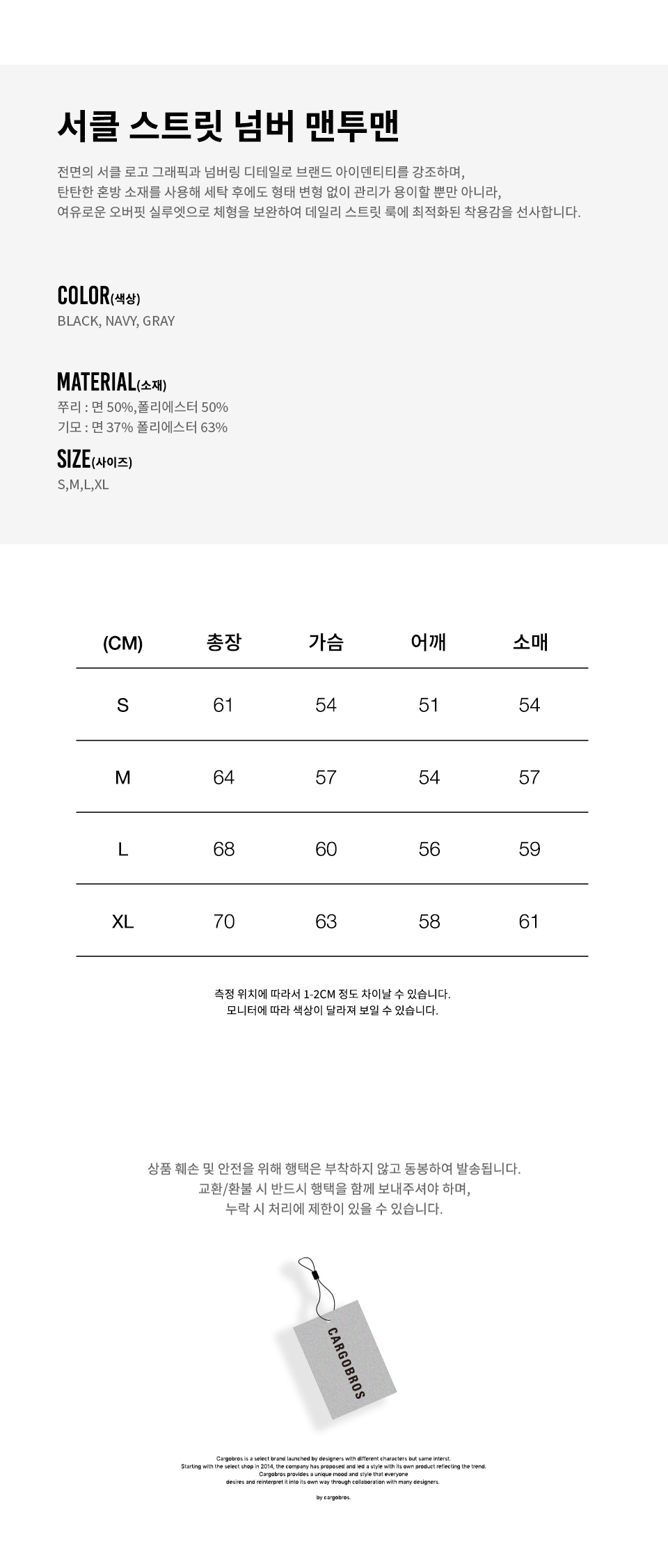 | 컬러 & 사이즈 | 상품 상세 사이즈 참조 | |
