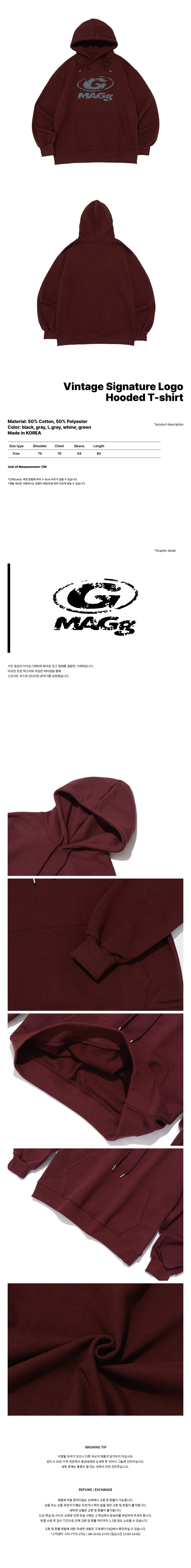 (빅사이즈) 빈티지 시그니처 로고 후드 티셔츠 (와인)