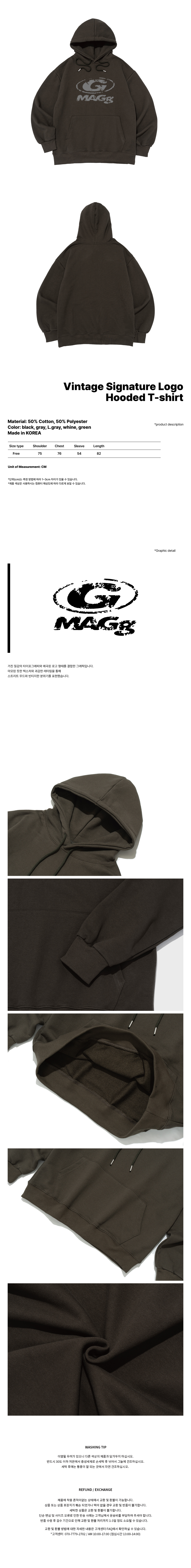 (빅사이즈) 빈티지 시그니처 로고 후드 티셔츠 (그린)