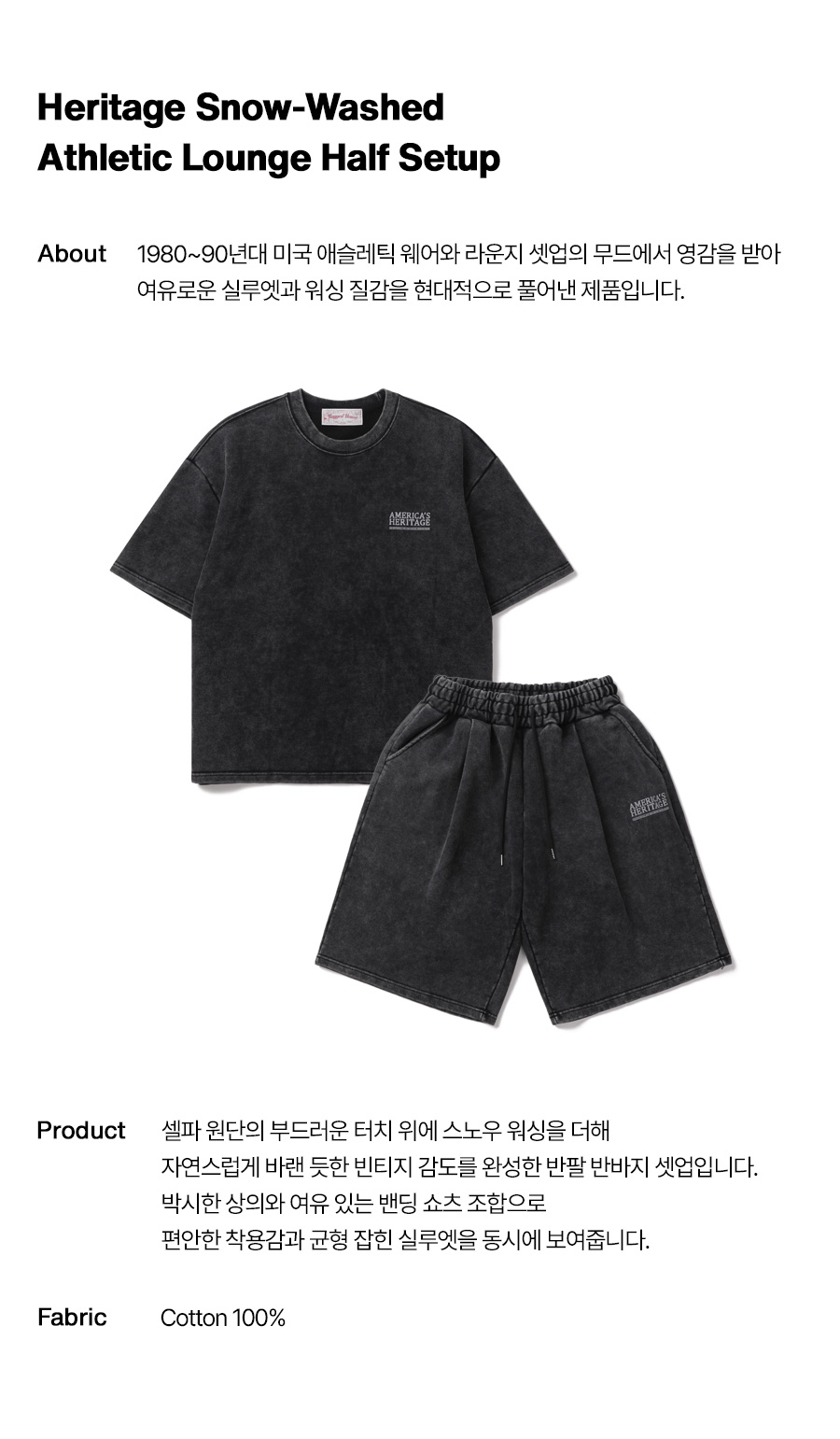 헤리티지 셀파 스노우워싱 하프 셋업 블랙