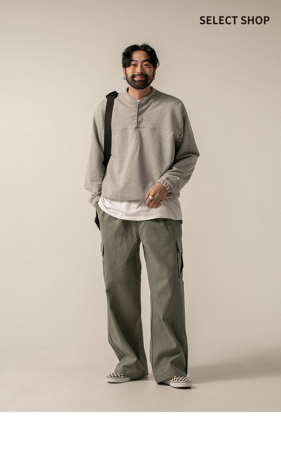 ⦁ 디자인 : 베이식한 팬츠 실루엣에 카고 포켓 디테일을 더해 포인트를 준 구성