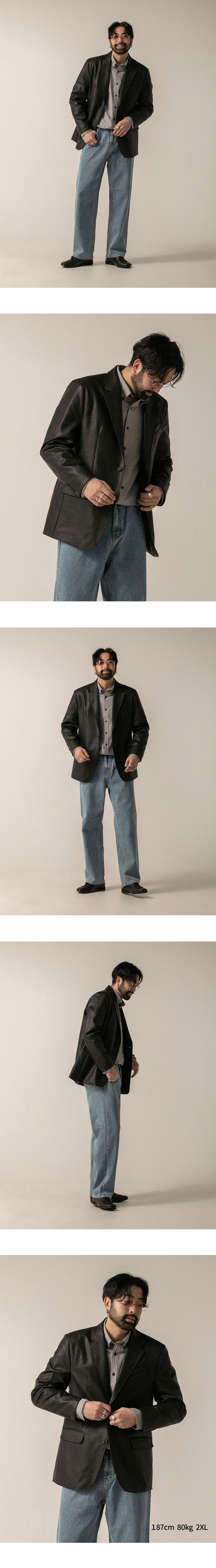 캐주얼 하게 어디에나 손쉽게 코디하기 좋고 편안함을 갖춘 인조가죽 블레이져입니다. 데님 팬츠, 코튼 팬츠 등 여러 하의와 스타일링이 가능하고 폭넓은 사이즈로 다양하게 입으실 수 있습니다.