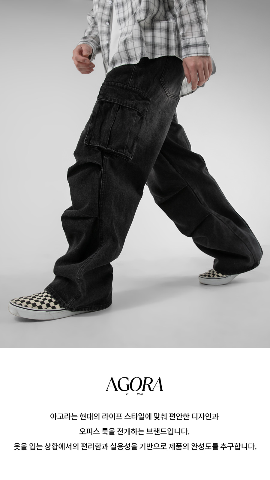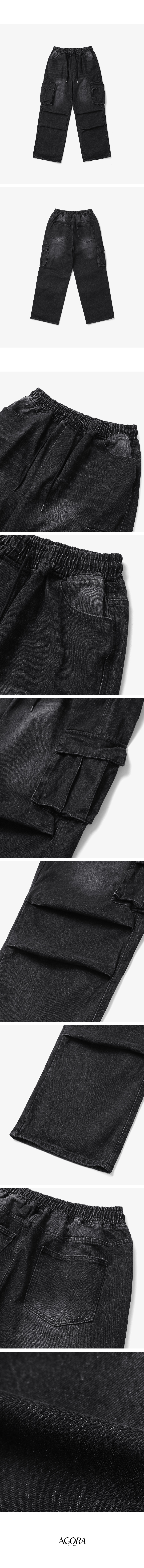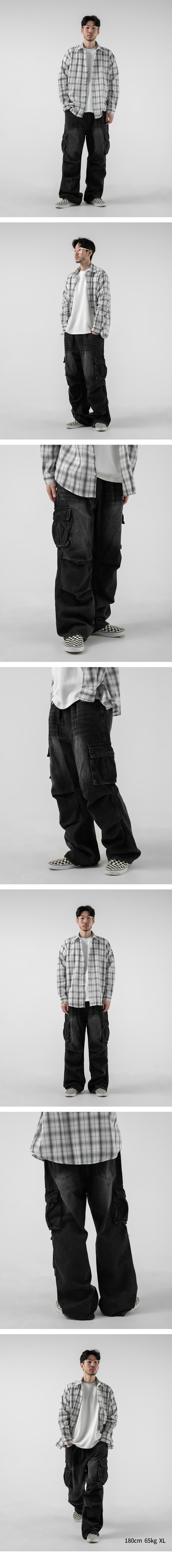 1092 파라슈트 카고 데님팬츠 흑청