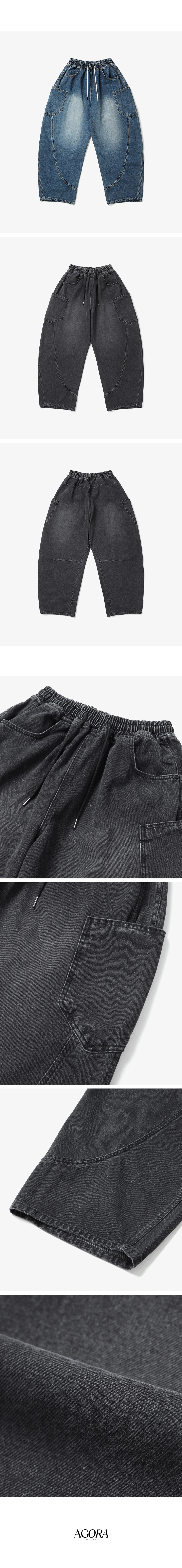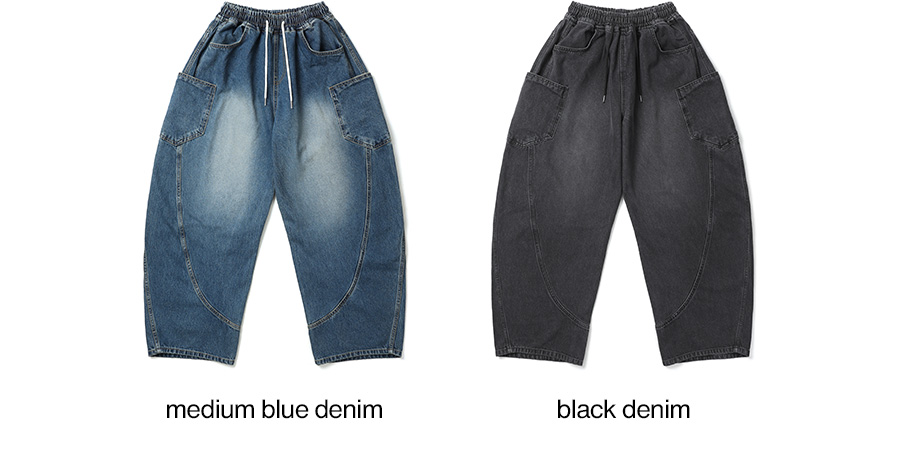1094 사이드포켓 절개 벌룬 데님팬츠 흑청