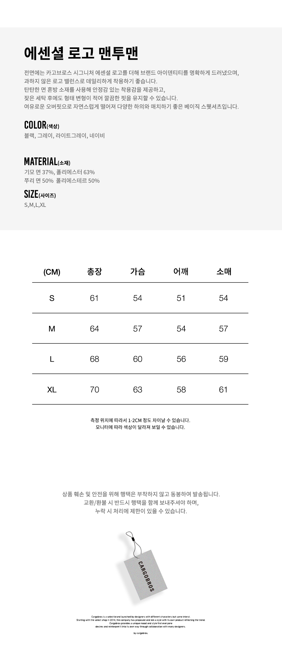 | 컬러 & 사이즈 | 상품 상세 사이즈 참조 | |