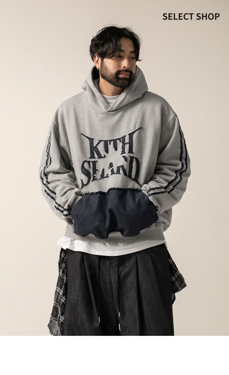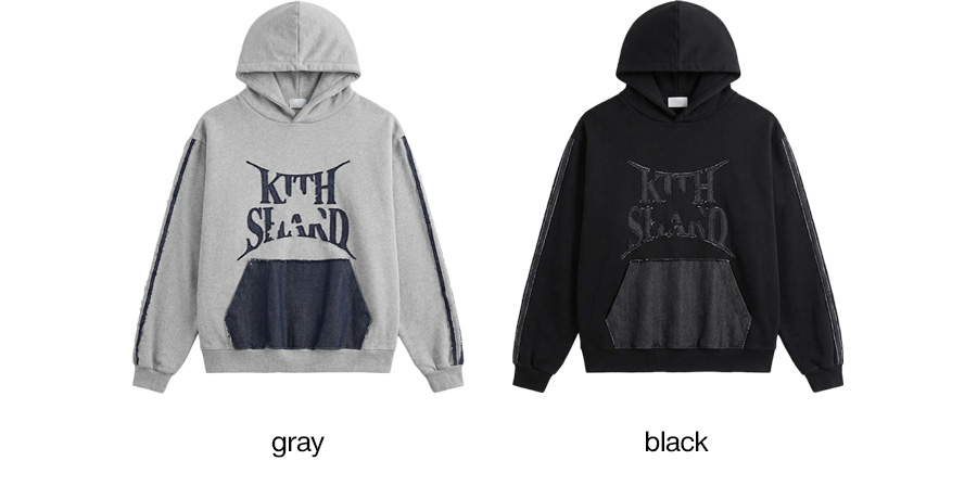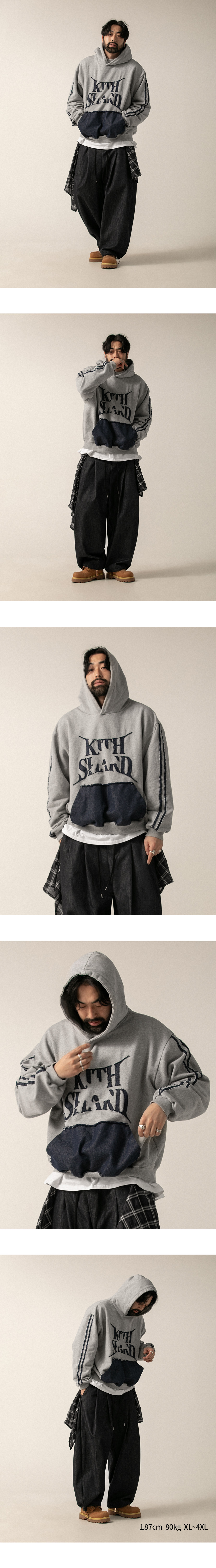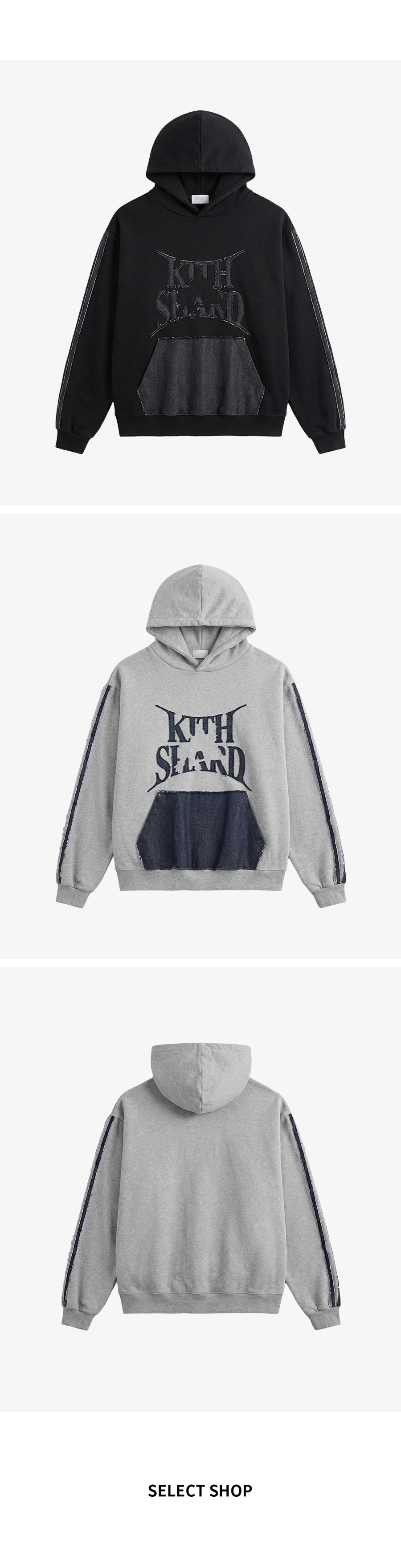 ⦁ 디자인 : 전면 프린트와 데님 배색 포인트가 더해진 후드티