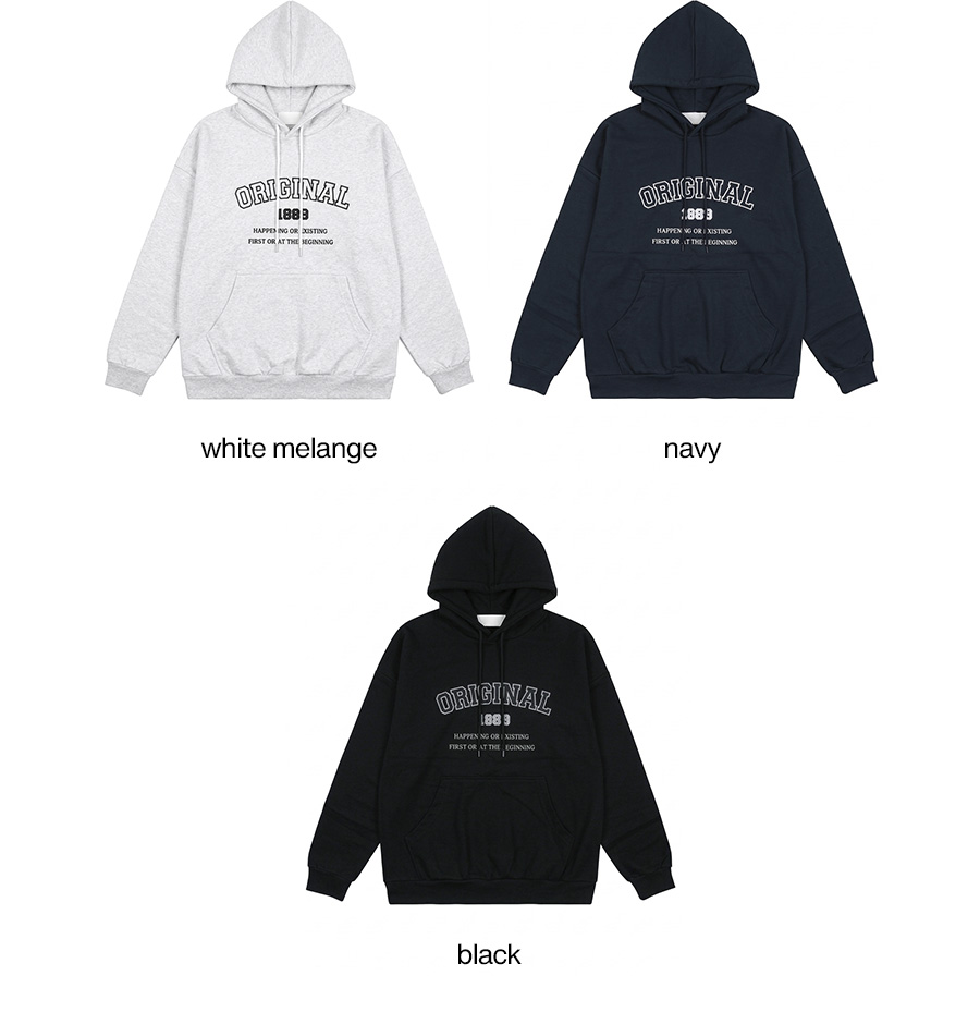 ⦁ 디자인 : 가슴 중앙에 컬리지 무드의 아치형 레터링 자수가 포인트를 더하는 후드티