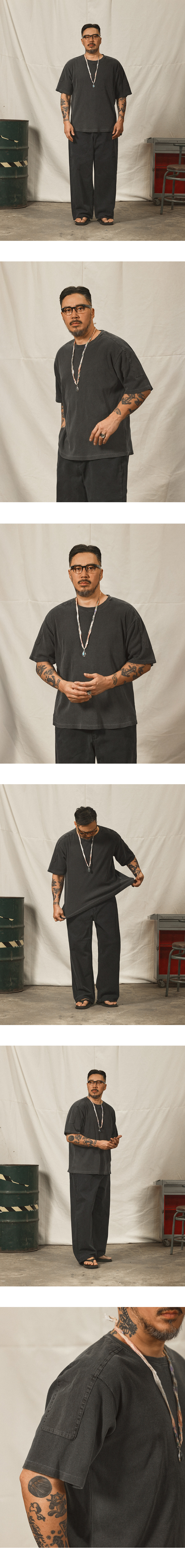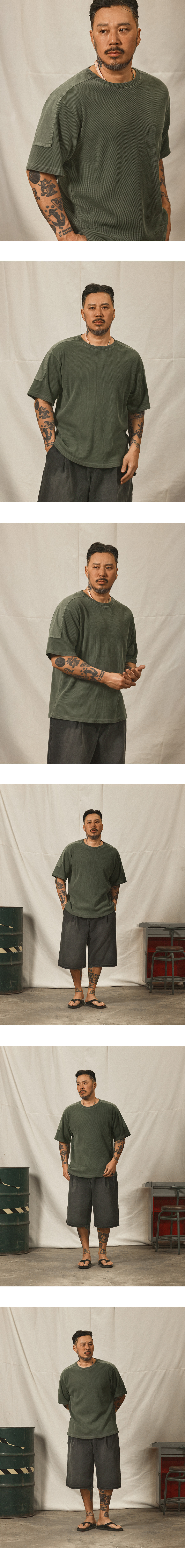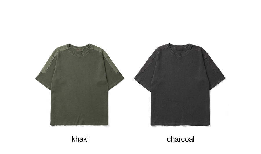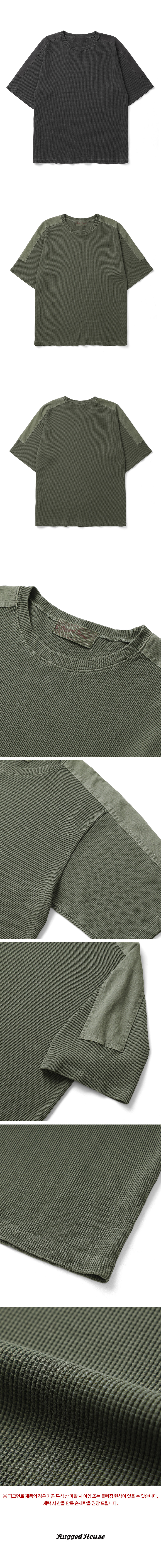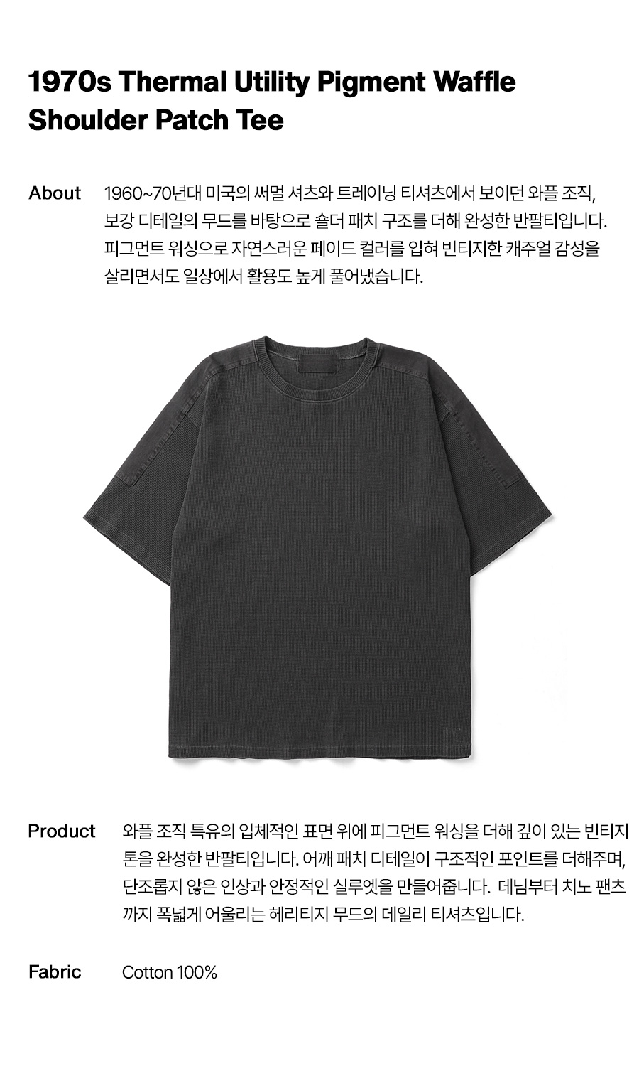 와플 피그먼트 숄더 패치 반팔티 챠콜