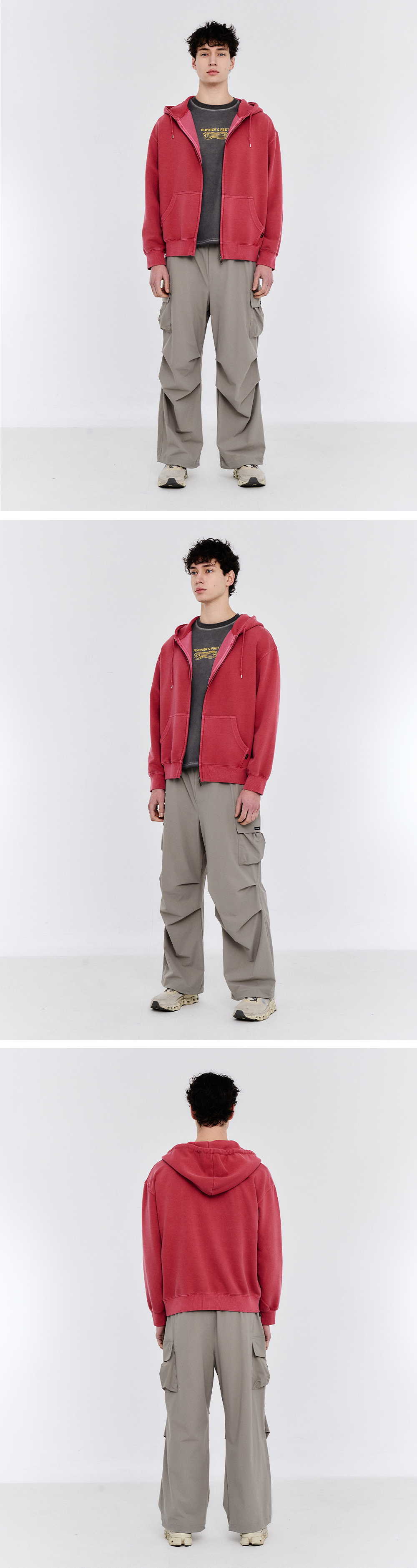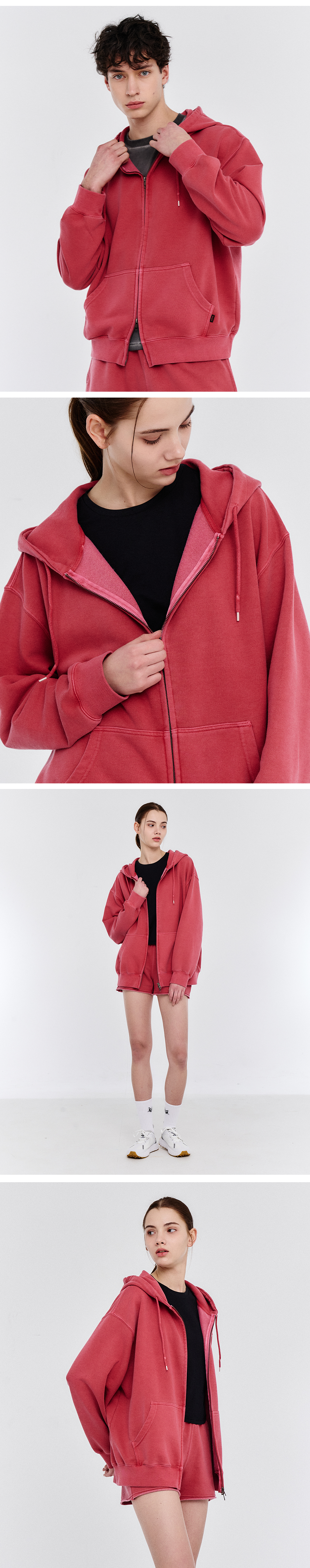 TECH SWEAT 피그먼트 후드집업 레드