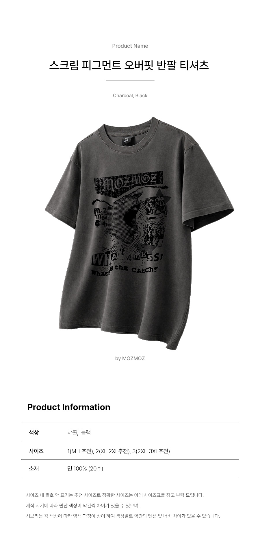 스크림 피그먼트 오버핏 반팔티셔츠 챠콜