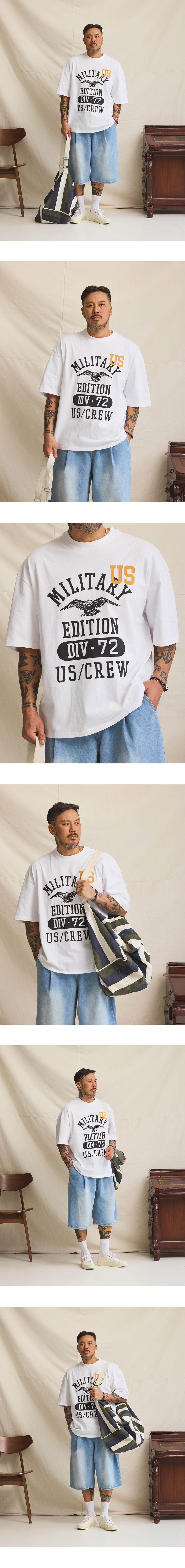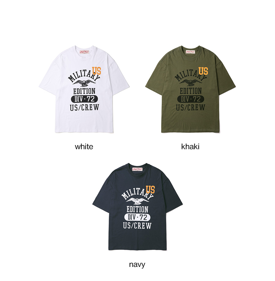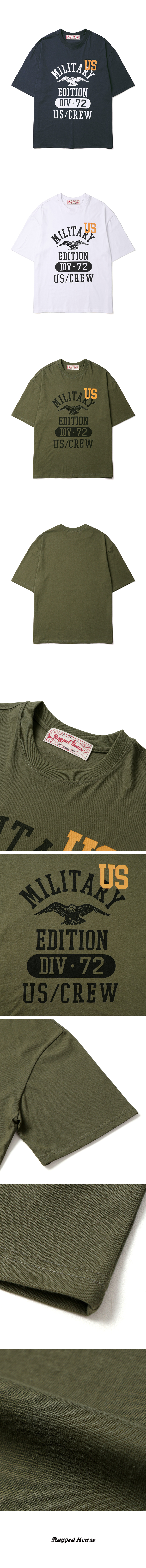 ⦁ 데님, 퍼티그 팬츠, 치노와 함께 매치했을 때 빈티지 밀리터리 스타일이 선명하게 완성되는 그래픽 티셔츠입니다.