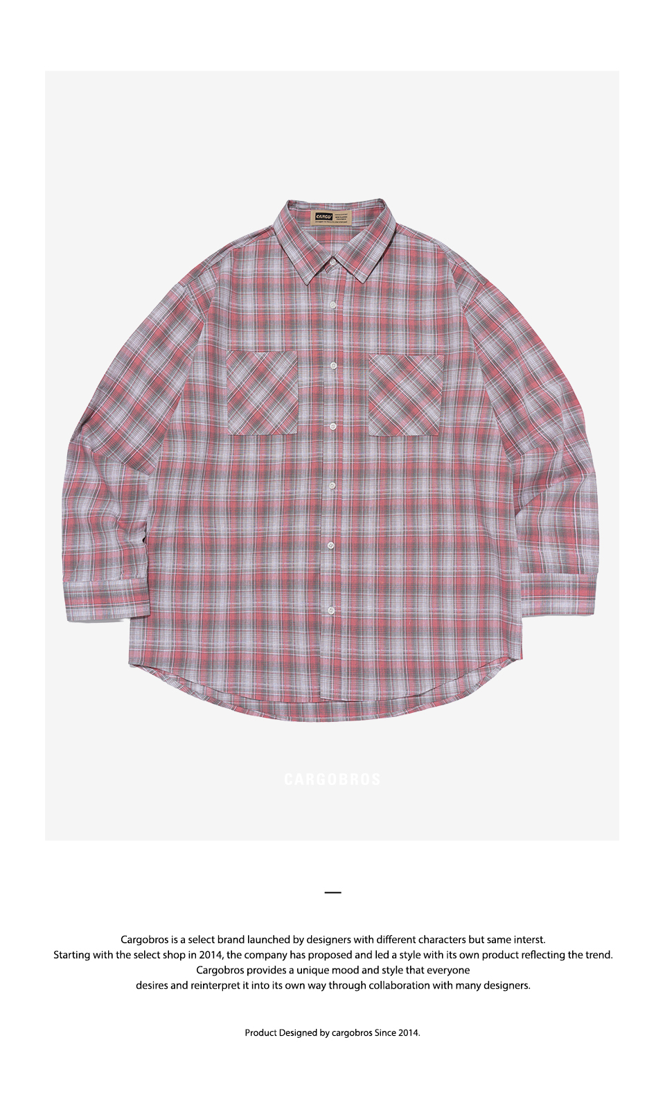 MULTI-POCKET OVER CHECK SHIRT (PINK)