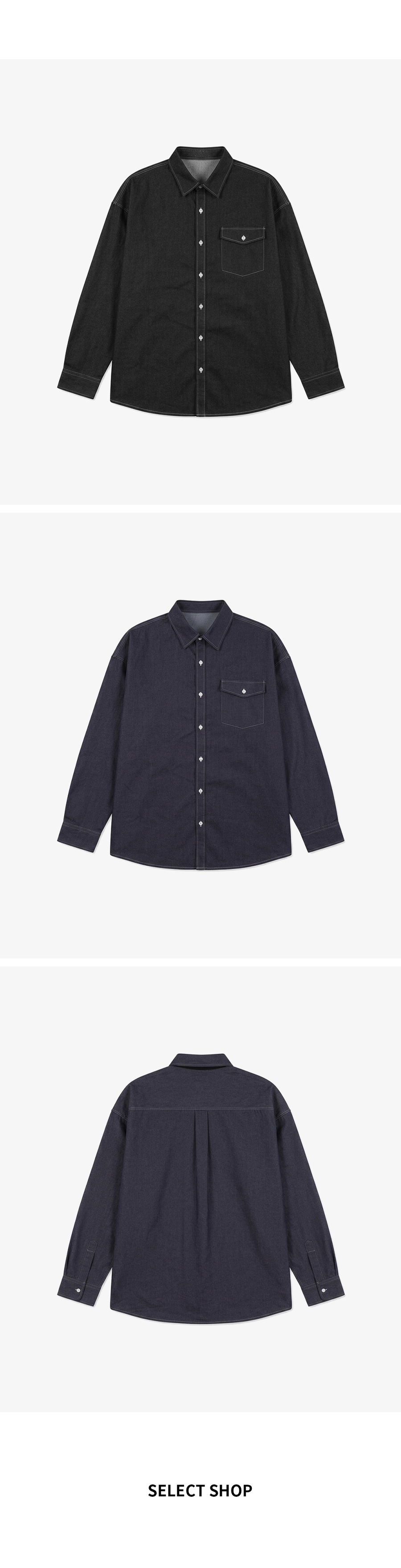 ⦁ 디자인 : 배색 스티치 라인이 워크웨어 무드를 살리는 클래식 데님 셔츠