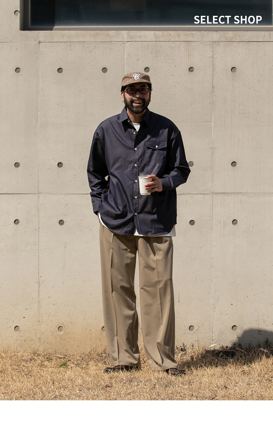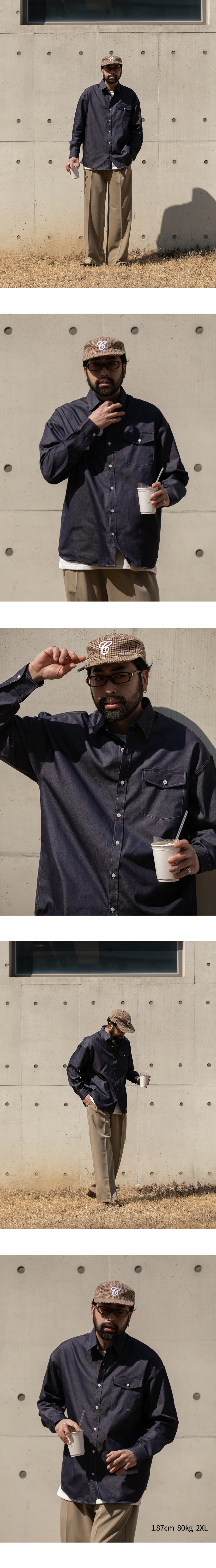 ⦁ 소재감 : 코튼 데님 원단으로 단단한 질감과 착용할수록 자연스러운 에이징이 생기는 소재