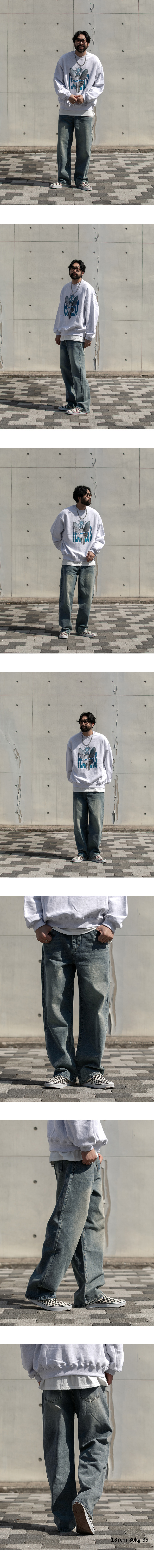 ⦁ 디자인 : 전면에 자연스러운 워싱과 페이드 디테일이 강조된 데님 팬츠