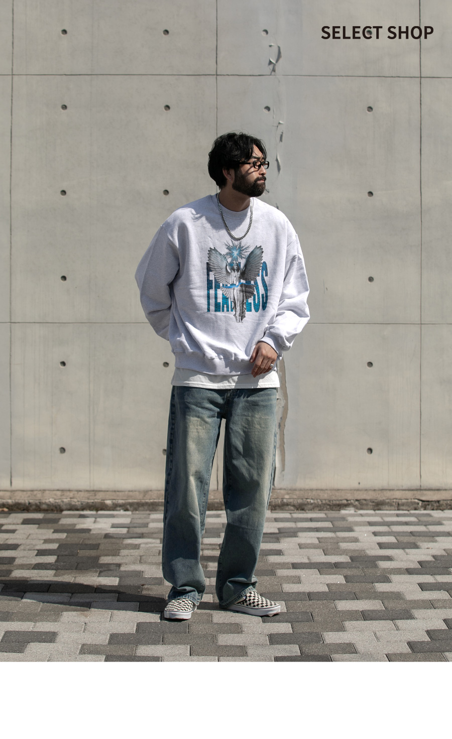 ⦁ 실루엣 : 밑단까지 여유 있게 떨어지는 와이드핏 실루엣