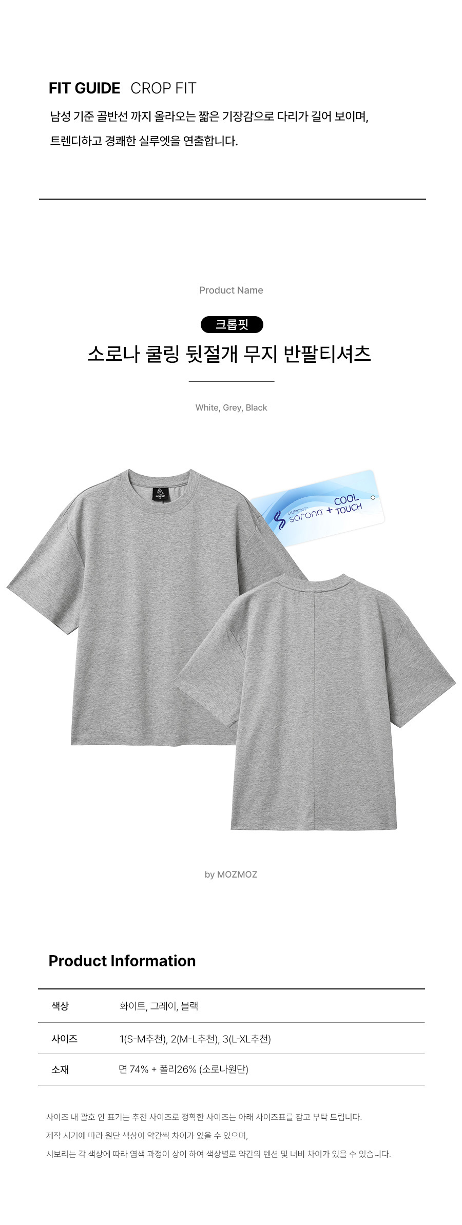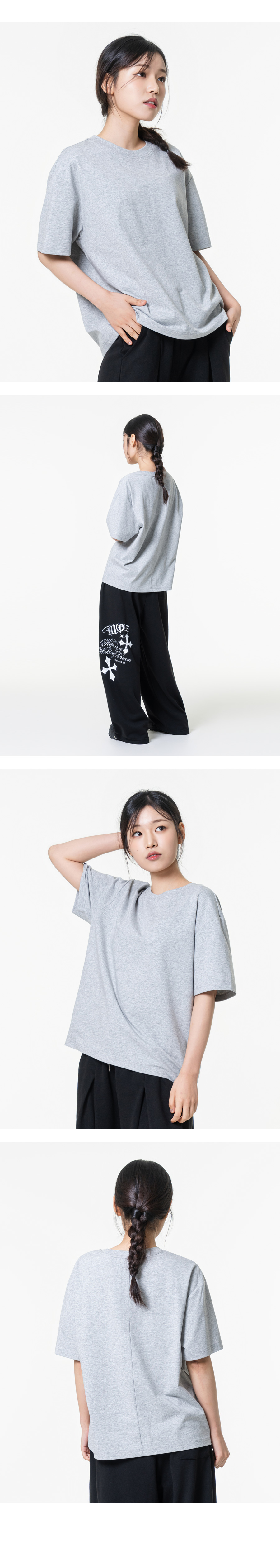 크롭핏 소로나 쿨링 기능성 뒷절개 무지 반팔티셔츠 그레이