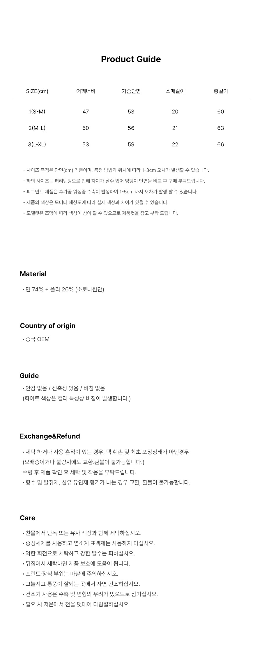 - 상품 상세란의 사이즈표는 업체 기준 측정정보 입니다.