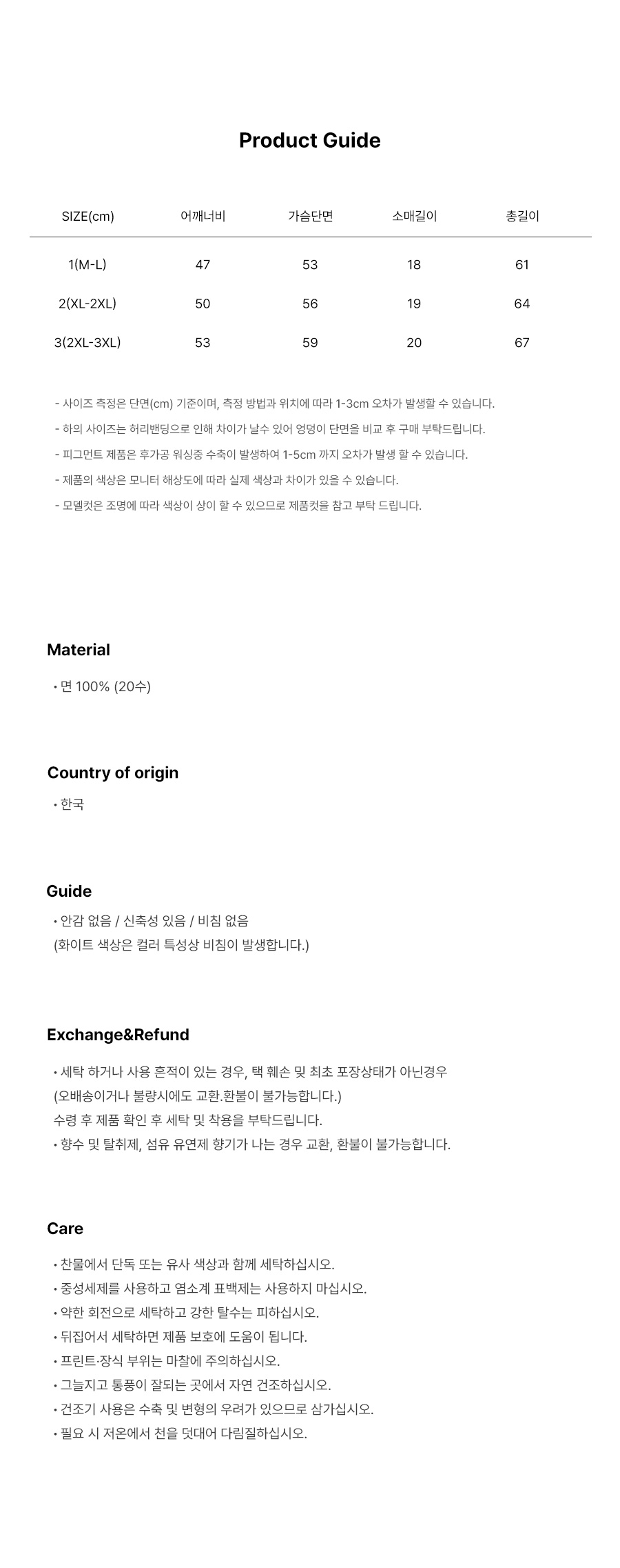 | 컬러 & 사이즈 | 상품 상세 사이즈 참조 | |