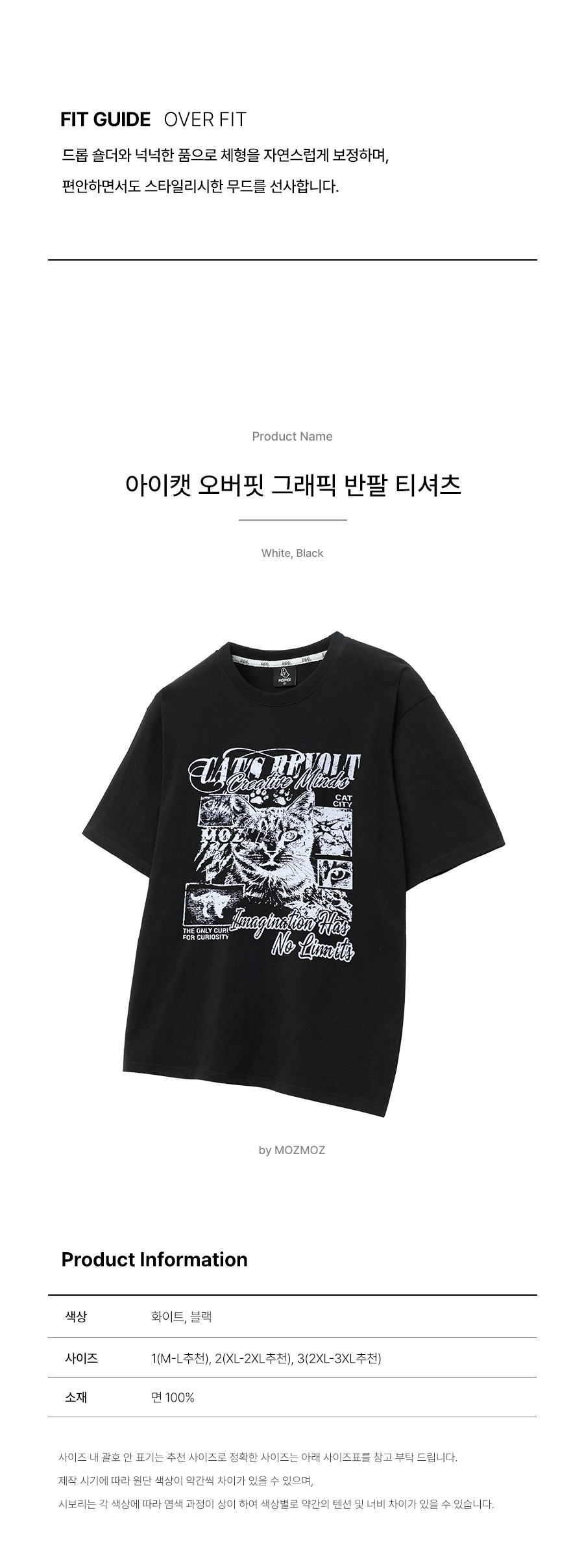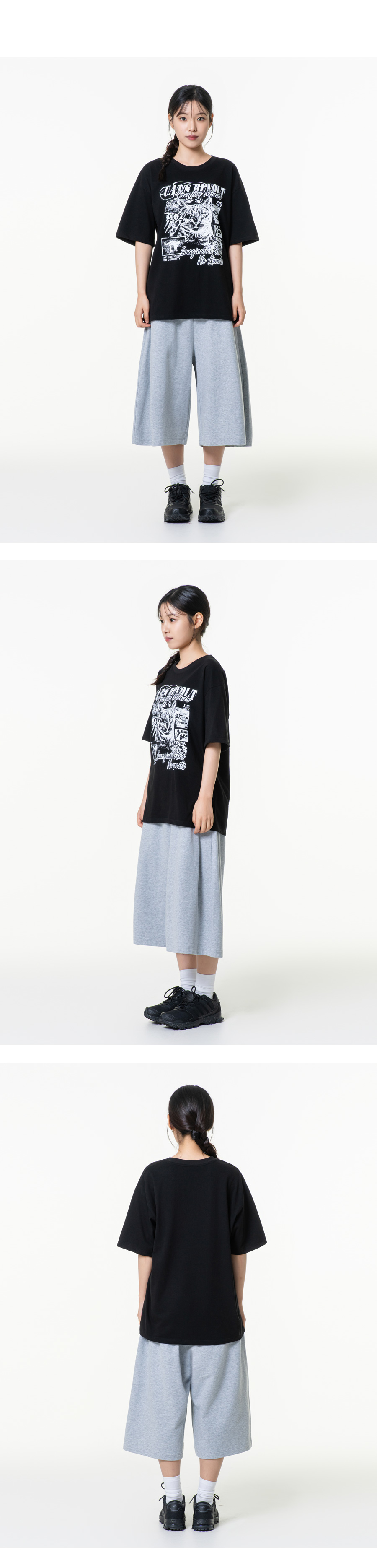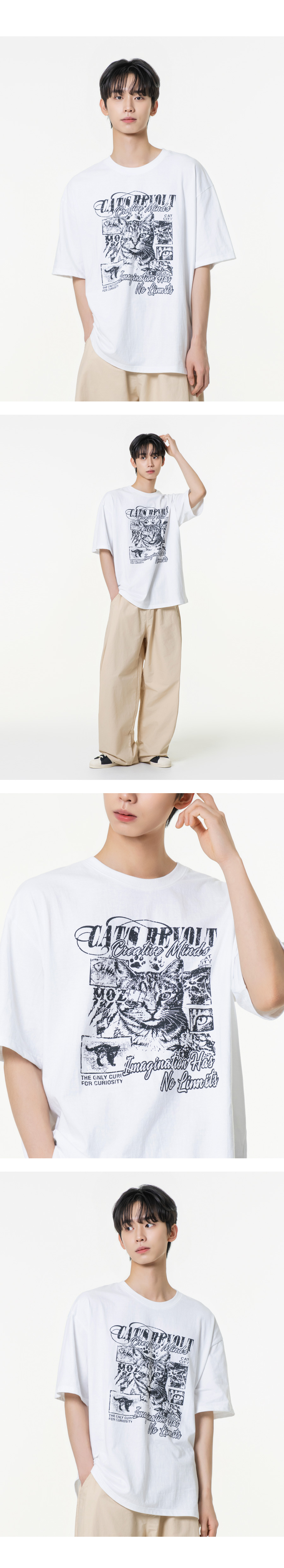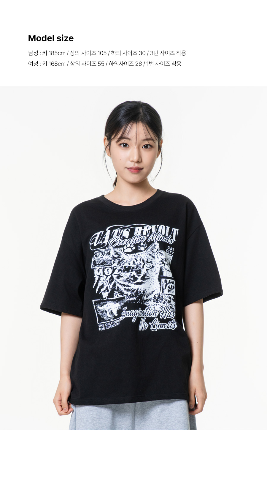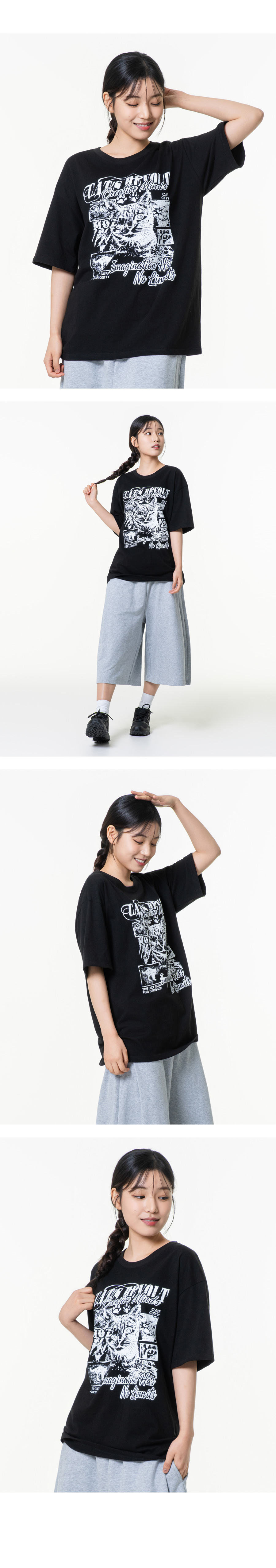 아이캣 오버핏 그래픽 반팔티셔츠 블랙