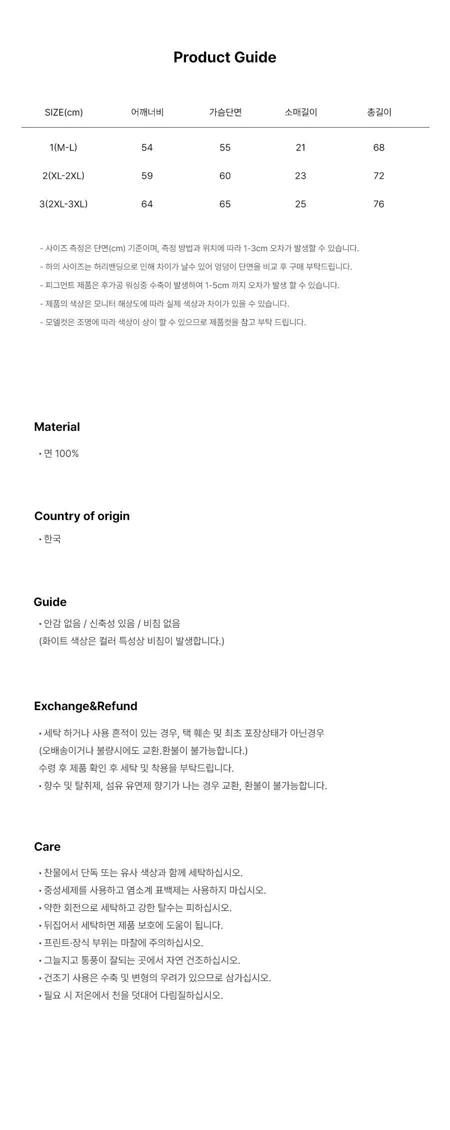 - 상품 상세란의 사이즈표는 업체 기준 측정정보 입니다.