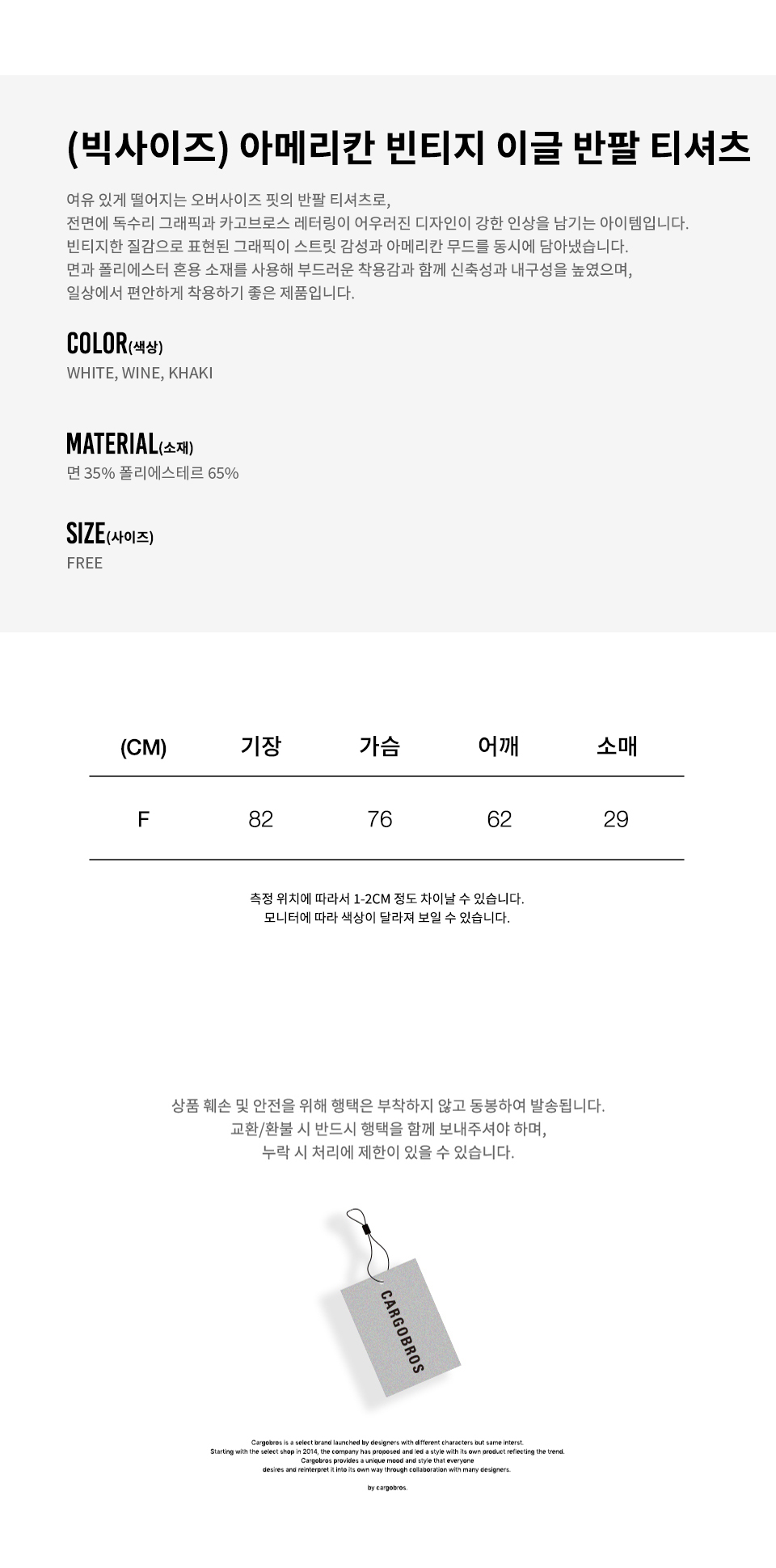 | 컬러 & 사이즈 | 상품 상세 사이즈 참조 | |