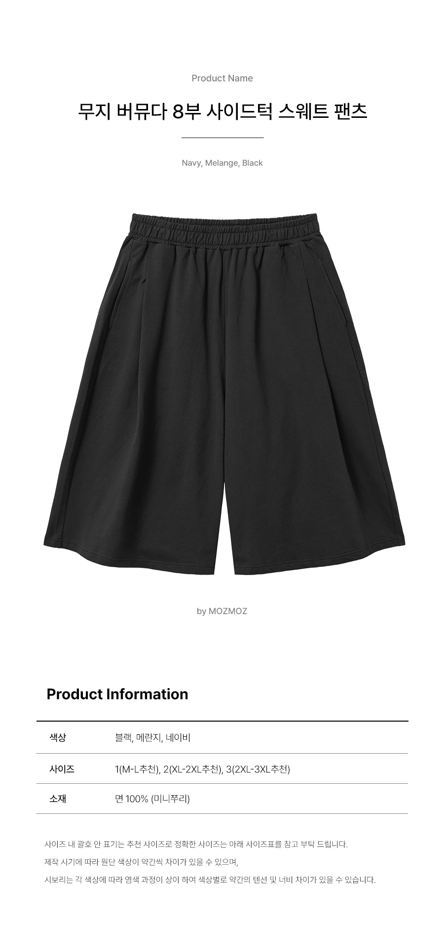 무지 버뮤다 8부 사이드턱 스웨트 팬츠 블랙