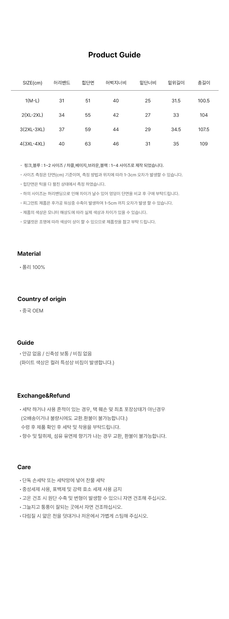 - 상품 상세란의 사이즈표는 업체 기준 측정정보 입니다.