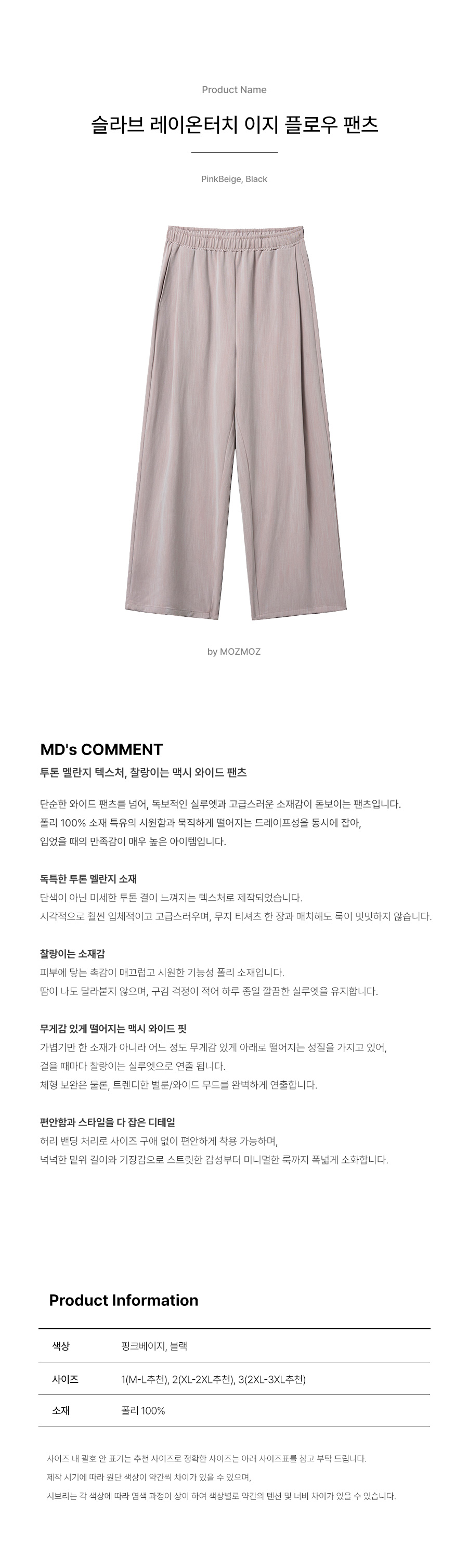 | 컬러 & 사이즈 | 상품 상세 사이즈 참조 | |
