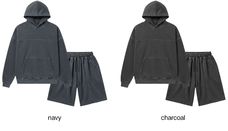 ⦁ 구성 : 후드티는 캥거루 포켓과 골지 시보리 마감이며 반바지는 밴딩과 스트링을 함께 적용해 핏 조절 가능