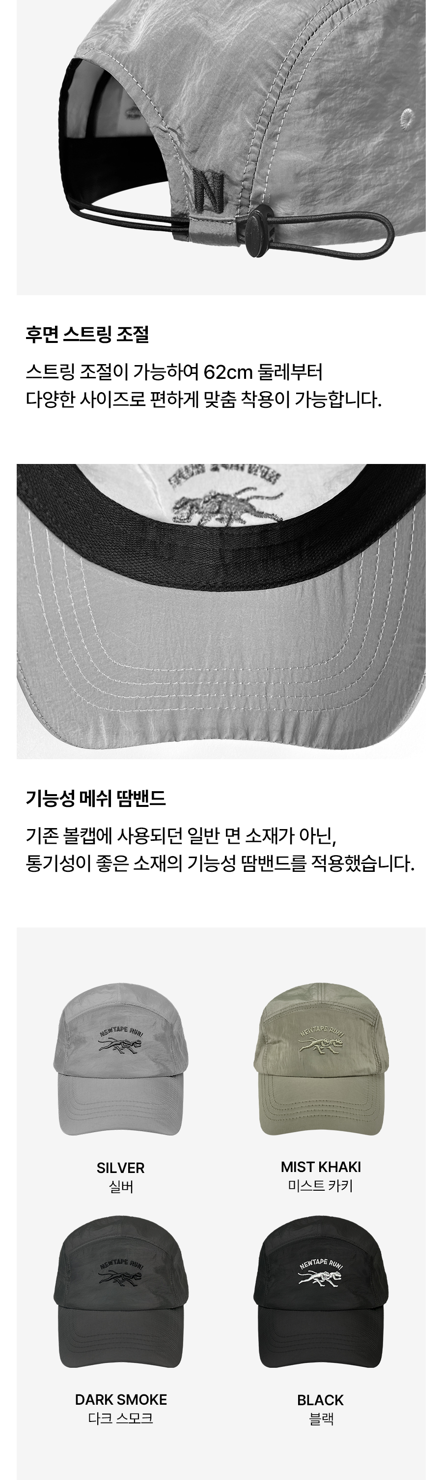 ⦁ 가볍고 쾌적한 나일론 소재의 러닝 캠프캡으로,