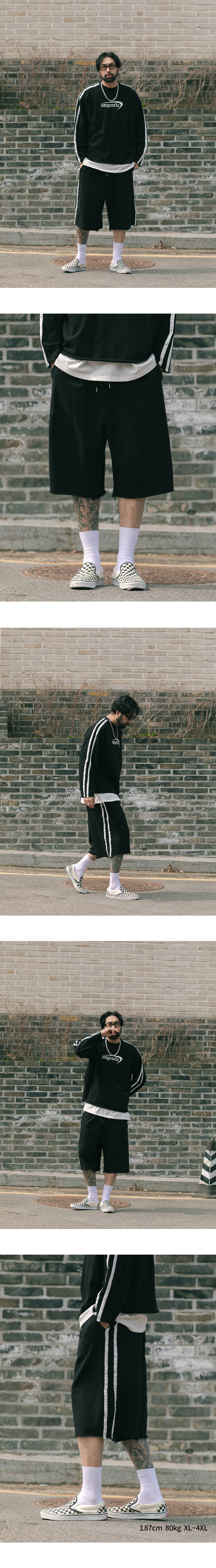 ⦁ 디자인 : 사이드를 따라 배색 테이프 라인을 적용해 스포티한 무드를 완성한 반바지