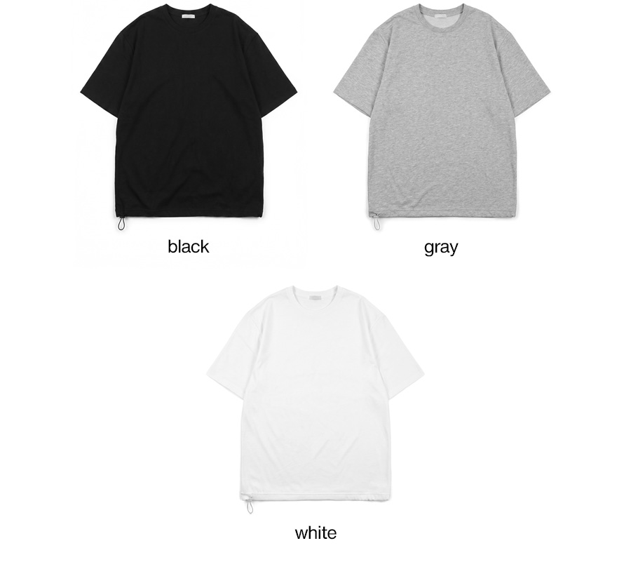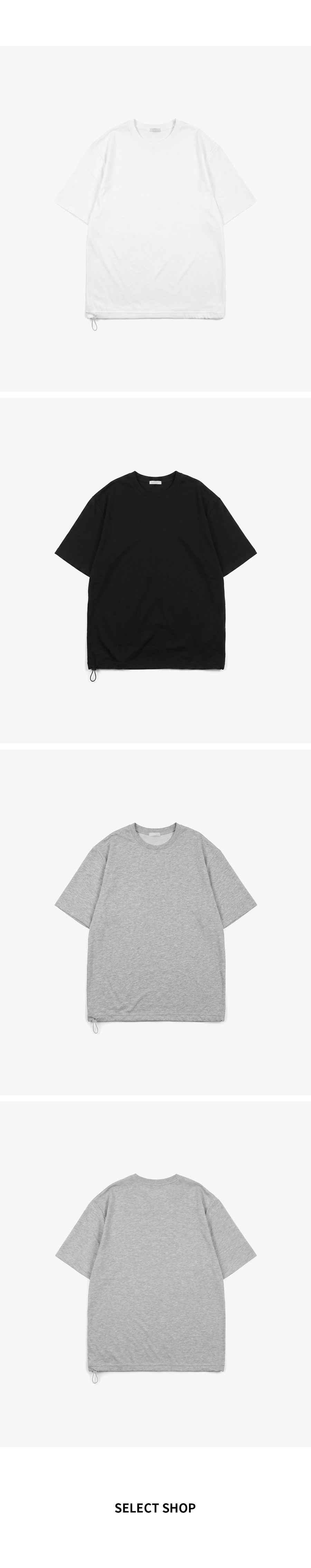 ⦁ 디자인 : 군더더기 없는 무지 디자인에 밑단 스트링 디테일을 적용해 실루엣 변화를 줄 수 있는 반팔티