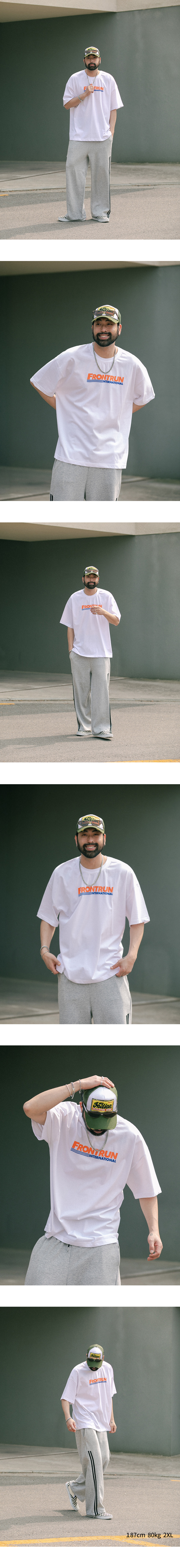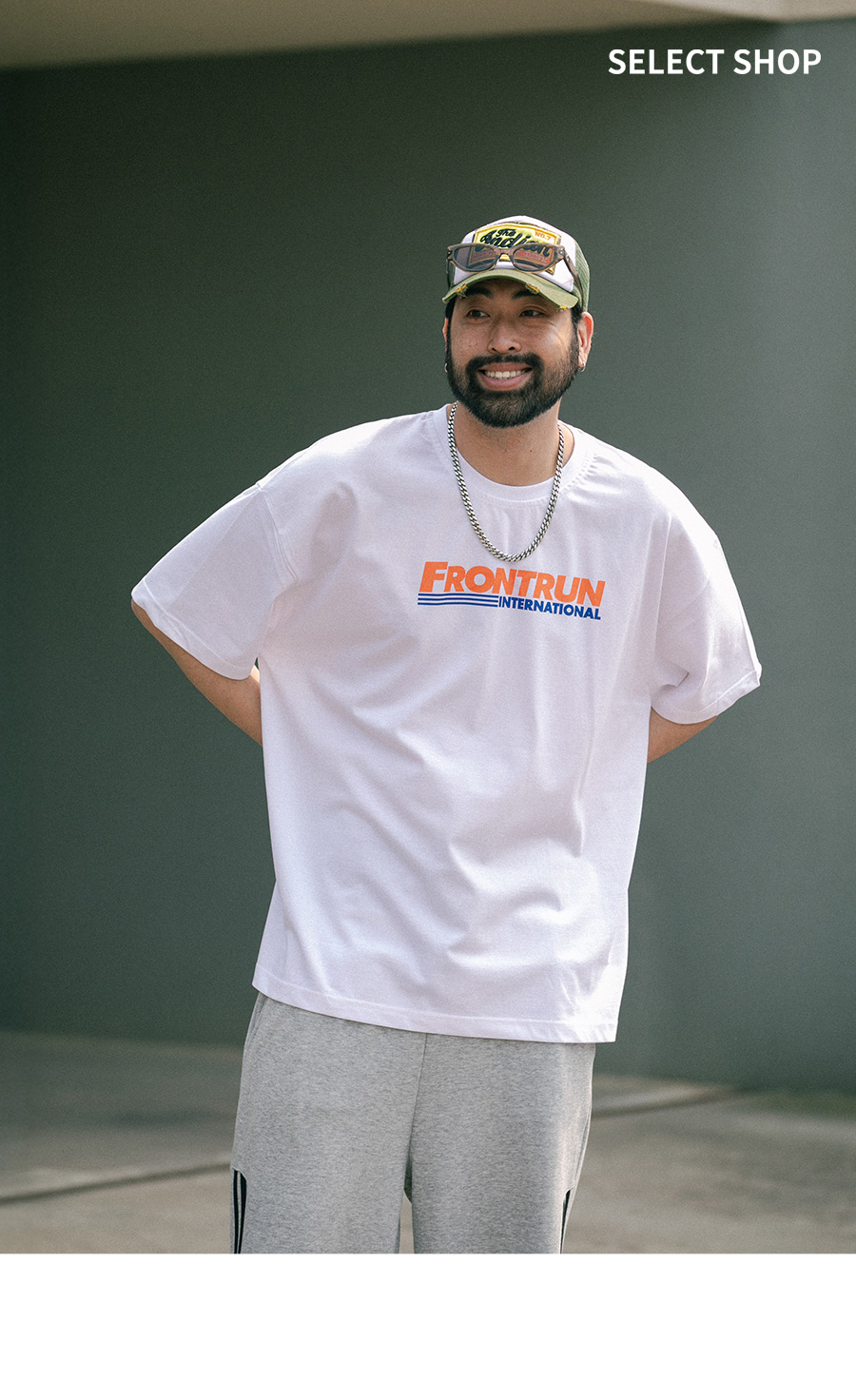 ⦁ 디자인 : 가슴 중앙에 레트로 스포티 무드의 레터링 프린트가 포인트를 완성하는 반팔티