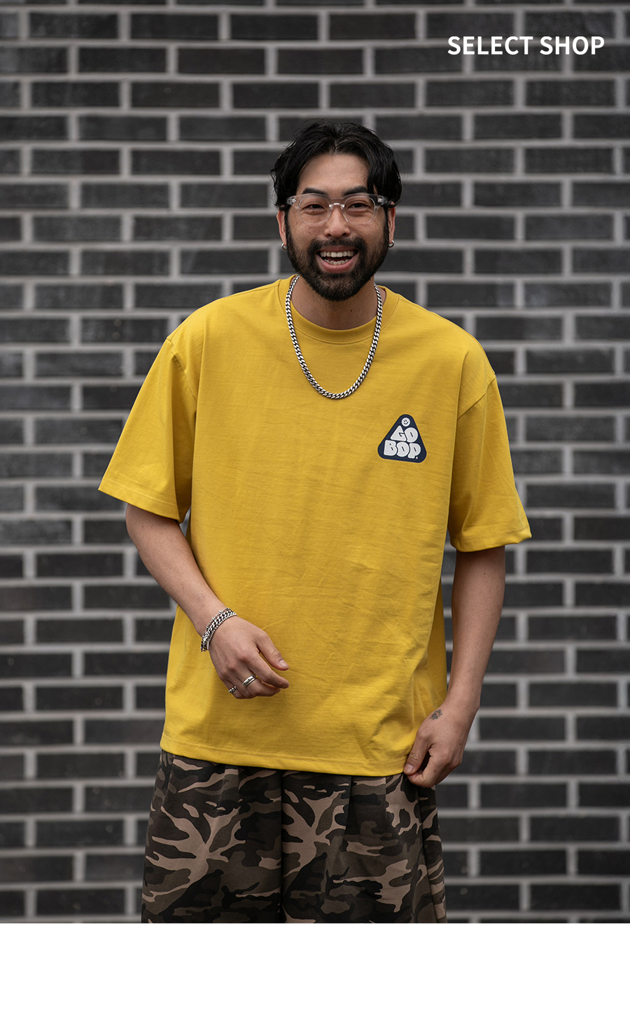 ⦁ ⦁ 디자인 : 앞면 가슴에 미니 로고 프린트를 더하고 뒷면에는 큼직한 고밥 그래픽을 배치해 앞뒤 모두 확실한 포인트를 살린 반팔티