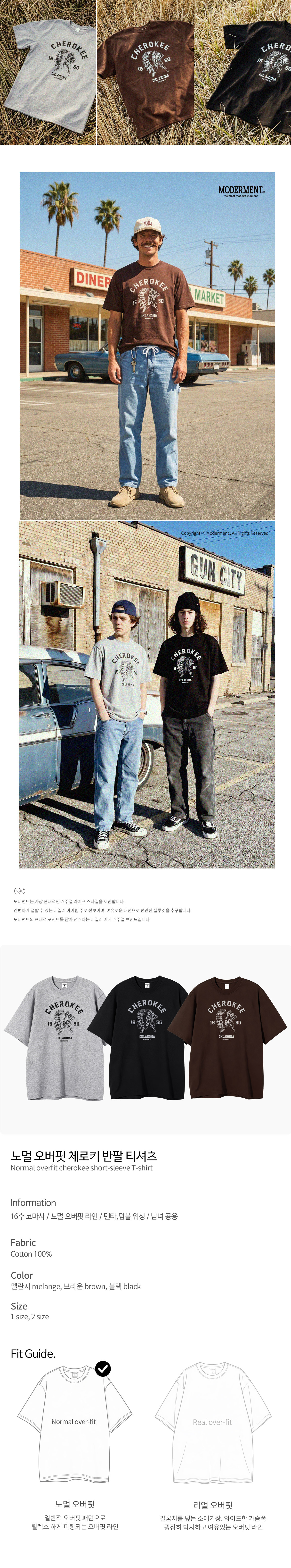 노멀오버핏 체로키 반팔 티셔츠 [3컬러]