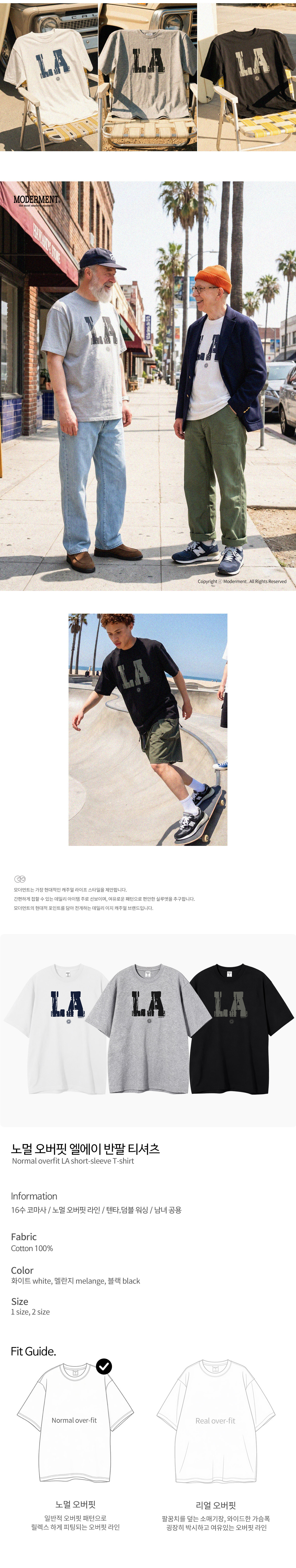 노멀오버핏 엘에이 반팔 티셔츠 [3컬러]